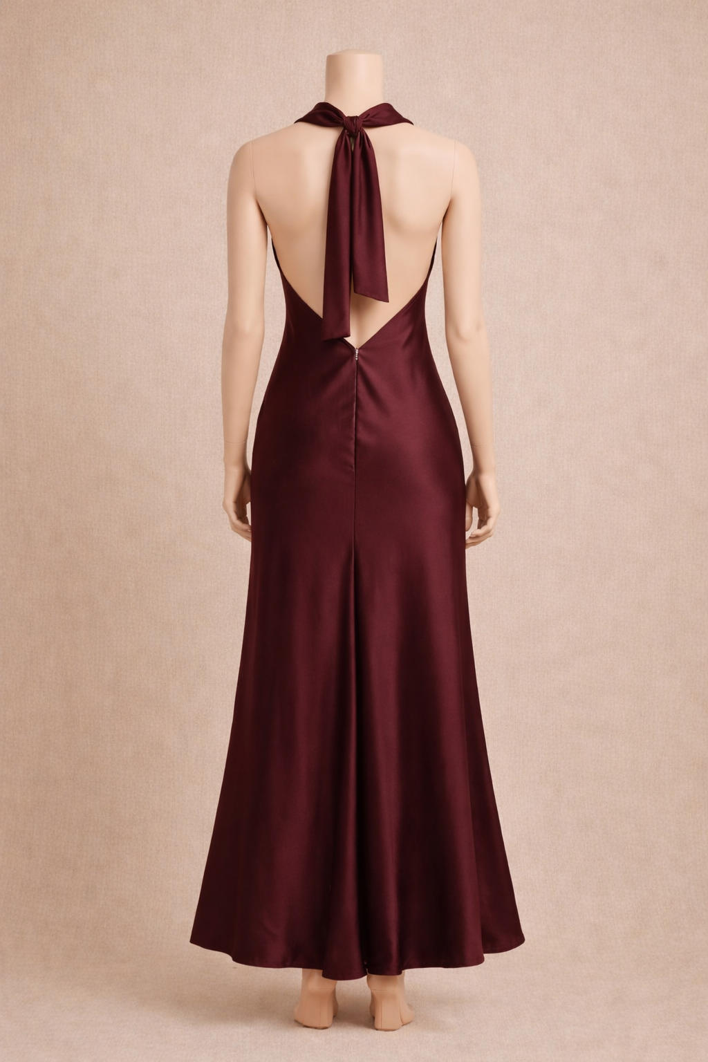 Robe longue satinée bordeaux dos nu